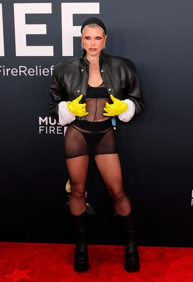 После развода с Кардашьян у Канье был короткий роман с Джулией Фокс, над стилем которой он тоже основательно поработал. Кстати, Джулия тоже была на «Грэмми» и тоже в колготках. Сразу видна рука мастера, вернее Канье, который на днях признался, что у него выявили аутизм. Отсюда, мол, все эти эксцентричные выходки и раздевания.