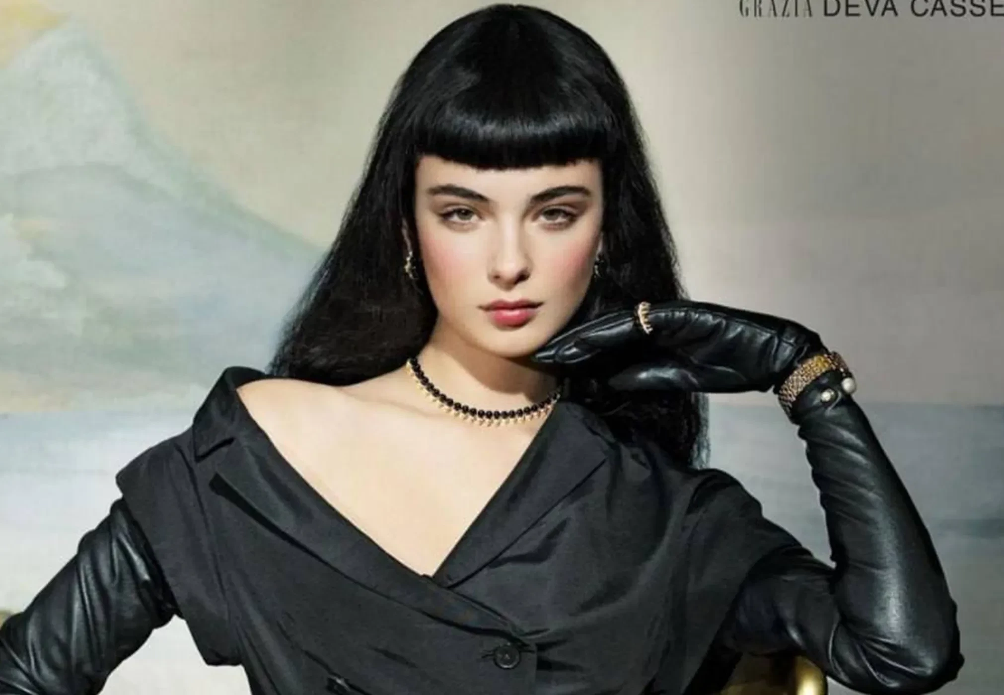 Главные новости » Шоу-Бизнес » Дева Кассель с трендовой микрочёлкой и в готическом образе снялась для Grazia