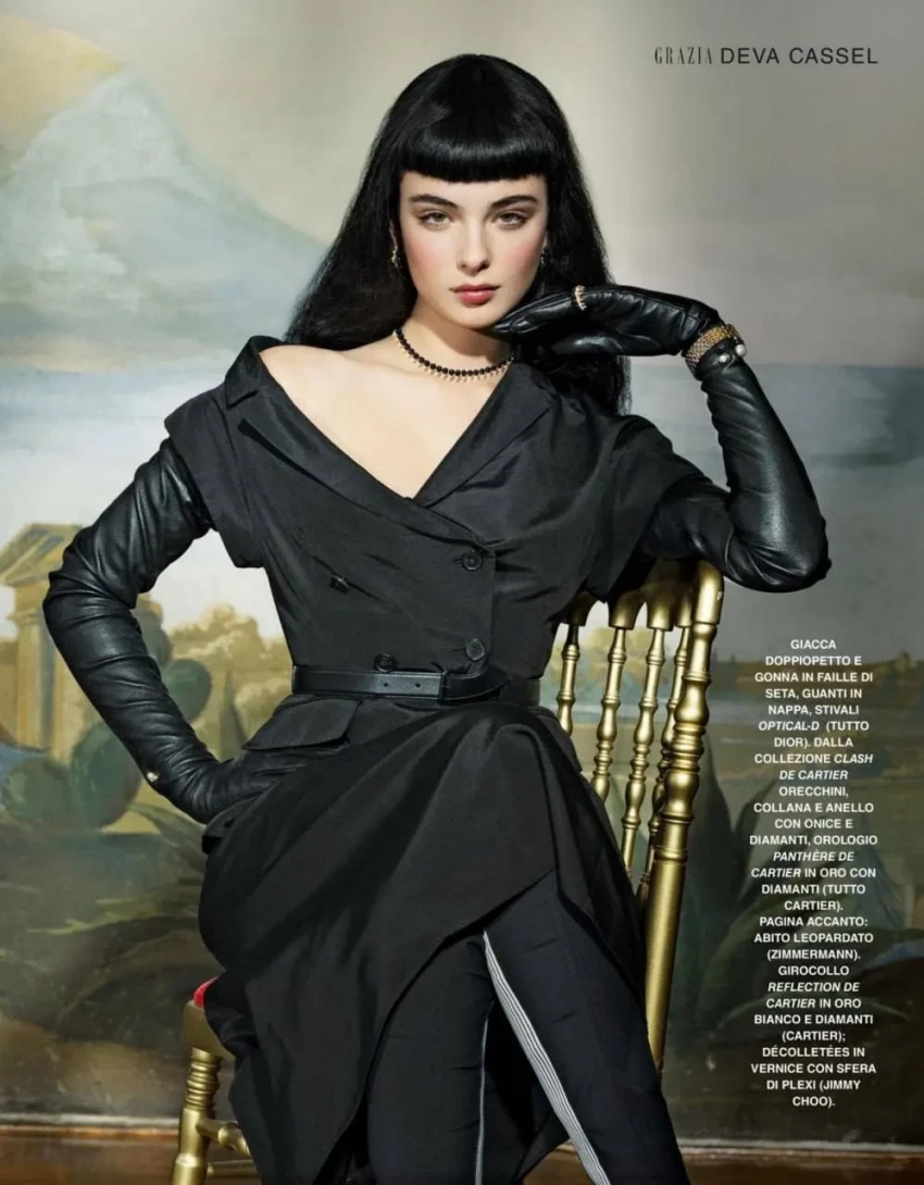 Появились кадры со съёмки Девы Кассель для итальянского Grazia. 20-летняя дочь Моники Беллуччи и Венсана Касселя предстала в готическом образе и с трендовой микрочёлкой, которую ранее продемонстрировали Ида Галич и Леди Гага.