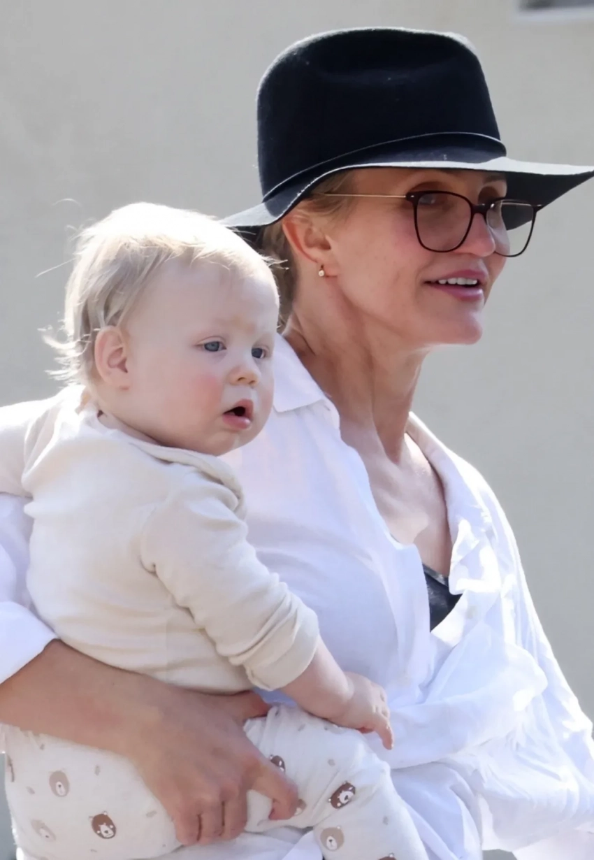 Кэмерон Диас заметили на публике с годовалым сыном Кардиналом от музыканта Бенджи Мэддена. Папарацци застали 52-летнюю актрису с ребёнком на парковке.