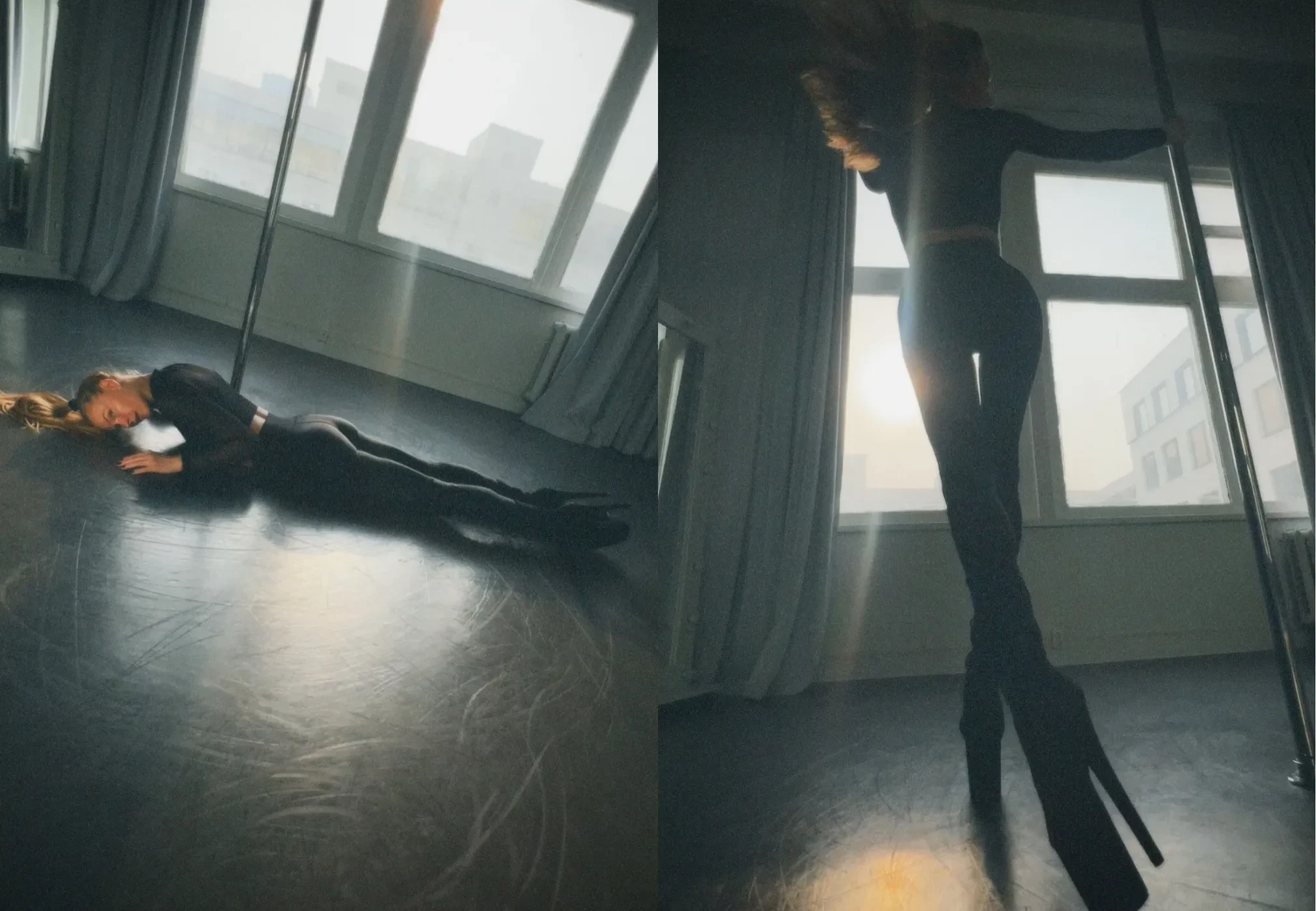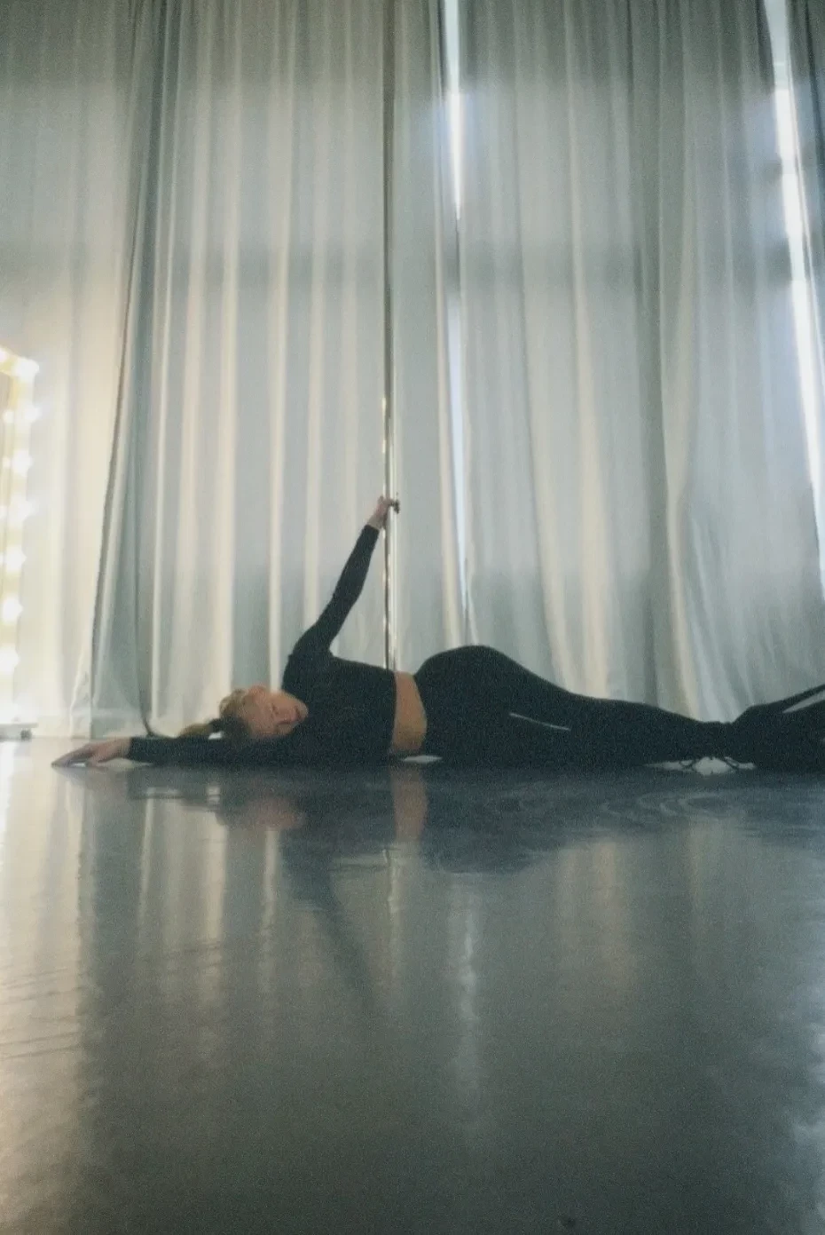 Светлана Ходченкова опубликовала в инстаграме* новые фотографии, которые сделала во время своих тренировок на пилоне. На снимках 42-летняя актриса позирует у шеста в откровенных позах, одетая в чёрный кроп-топ с длинными рукавами, лосины в тон и стрип-туфли на высоком каблуке и платформе.