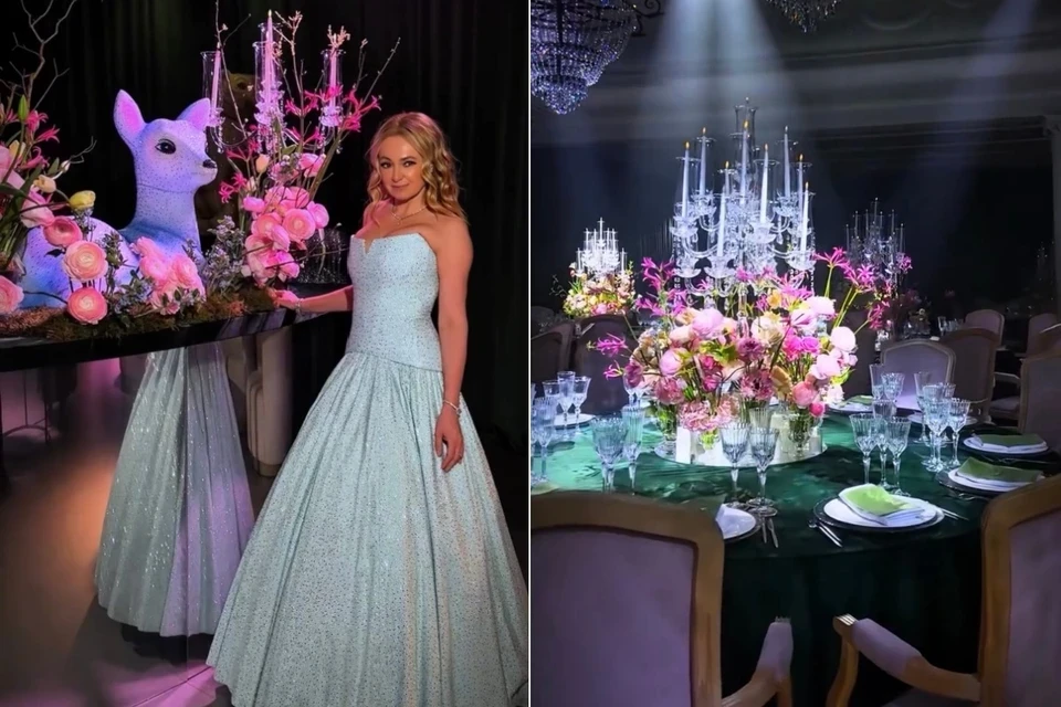 Платье принцессы, сказочный лес, карпаччо из красной креветки и щечки теленка: как Яна Рудковская отметила 50-летие