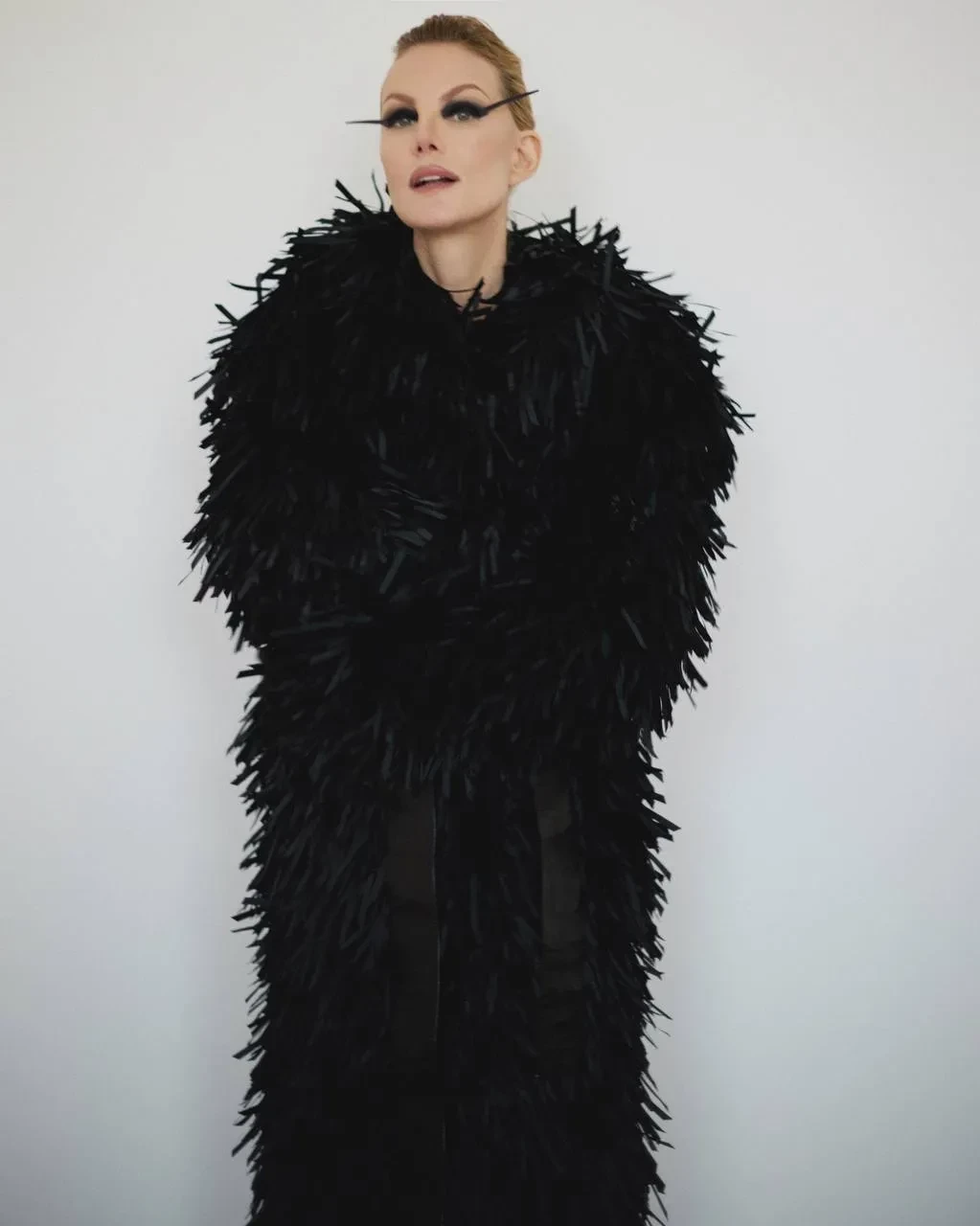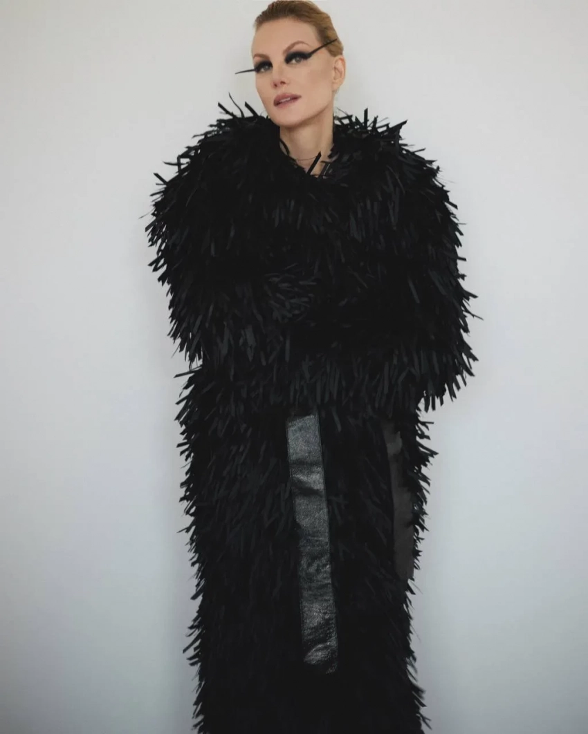 Рената Литвинова показала кадры новой фэшн-съёмки, на которых она позирует в чёрной шубе Viva Vox и с длинными "стрелками". В посте 58-летняя актриса и режиссёр заявила, что не считает себя модной, хотя Литвинова известна своей близкой дружбой с бывшим креативным директором Balenciaga и новым креативным директором Gucci Демной Гвасалией и любовью к модной индустрии: она часто ходит на модные показы, сама принимает в них участие и носит кутюр.