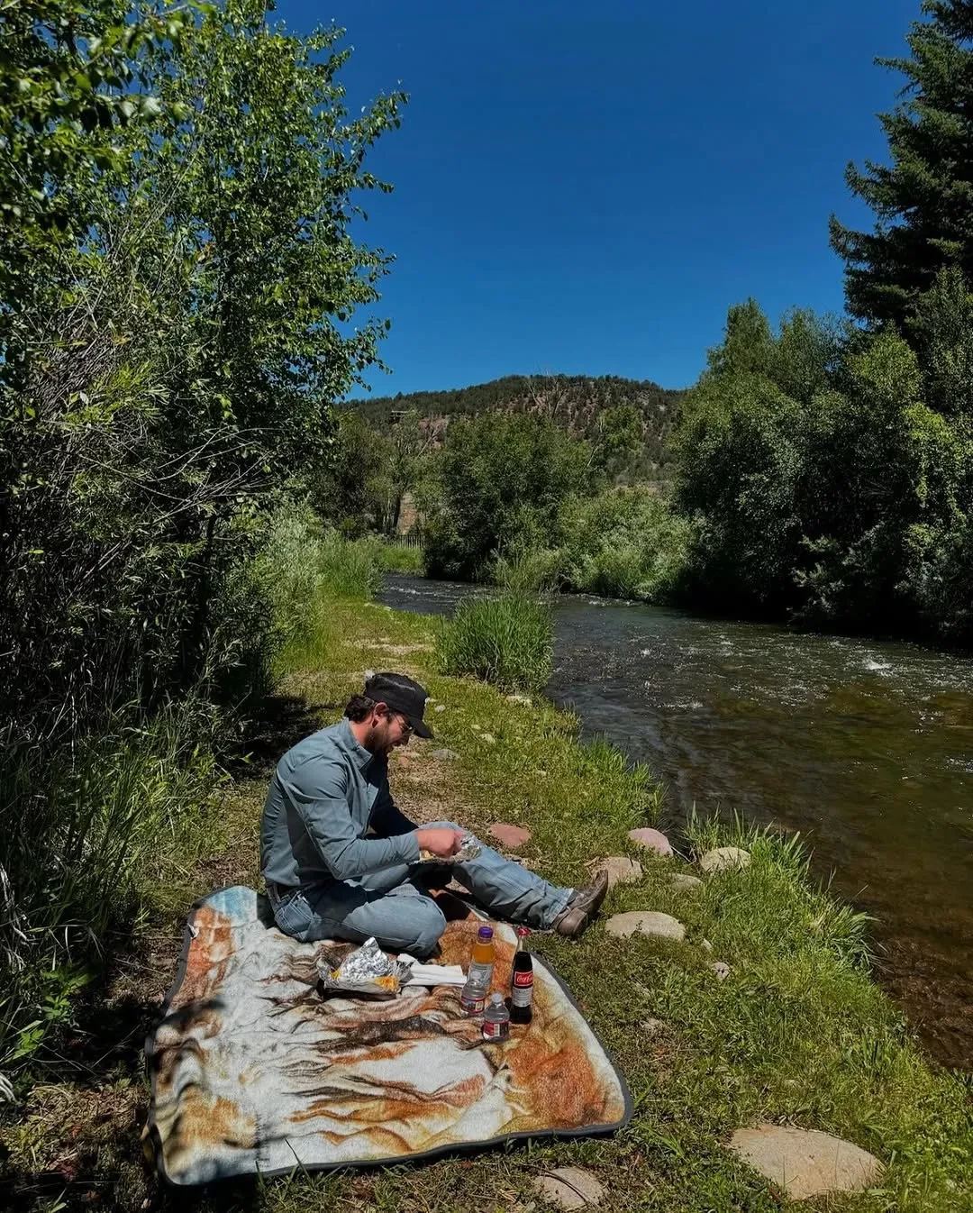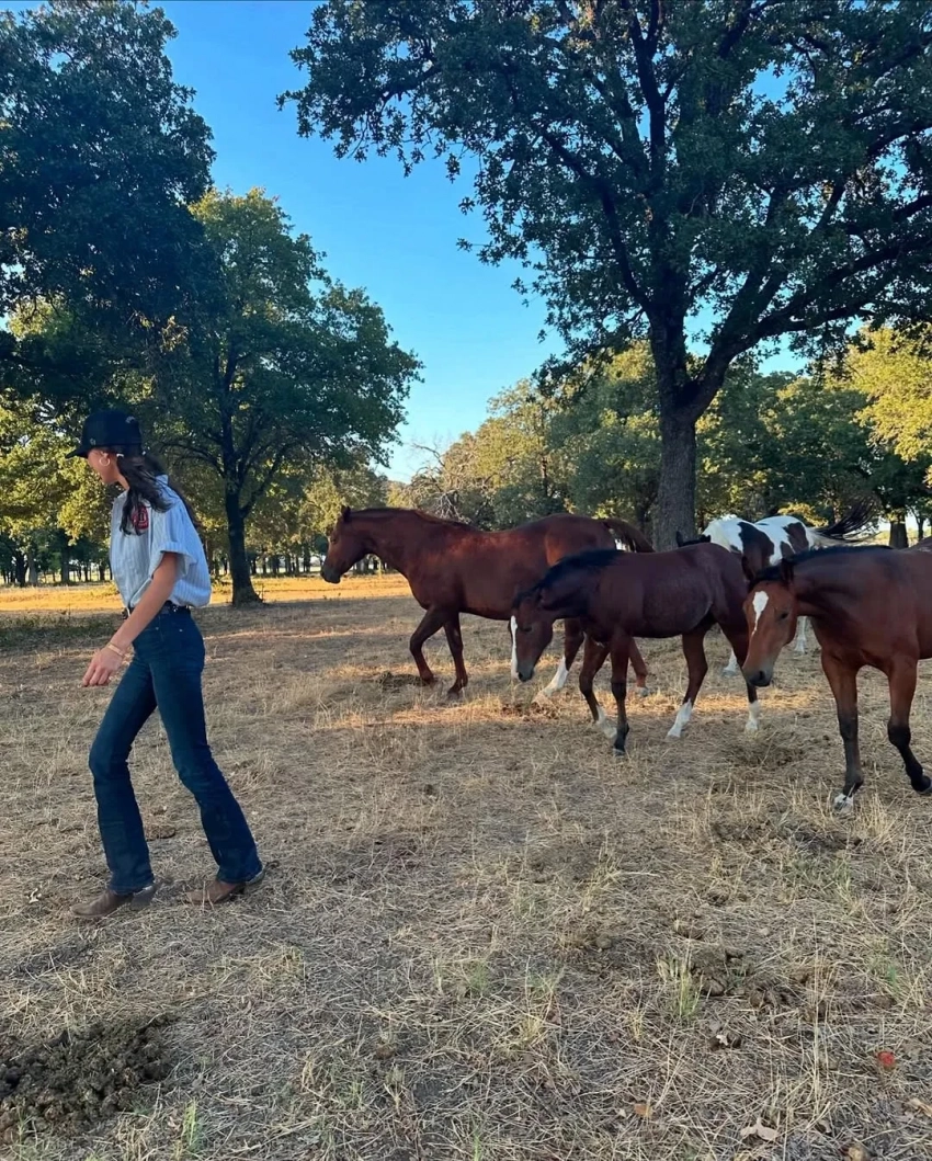 На кадрах Белла проводит время с бойфрендом-ковбоем Аданом Бануэлосом на пикнике у горной реки. Она позирует в косынке и топе, который развивается на ветру, отчего кажется, что у Хадид беременный живот. Это фото модель поставила первым в подборке, а фолловеры сделали выводы, что она намекает на будущую или настоящую беременность.
