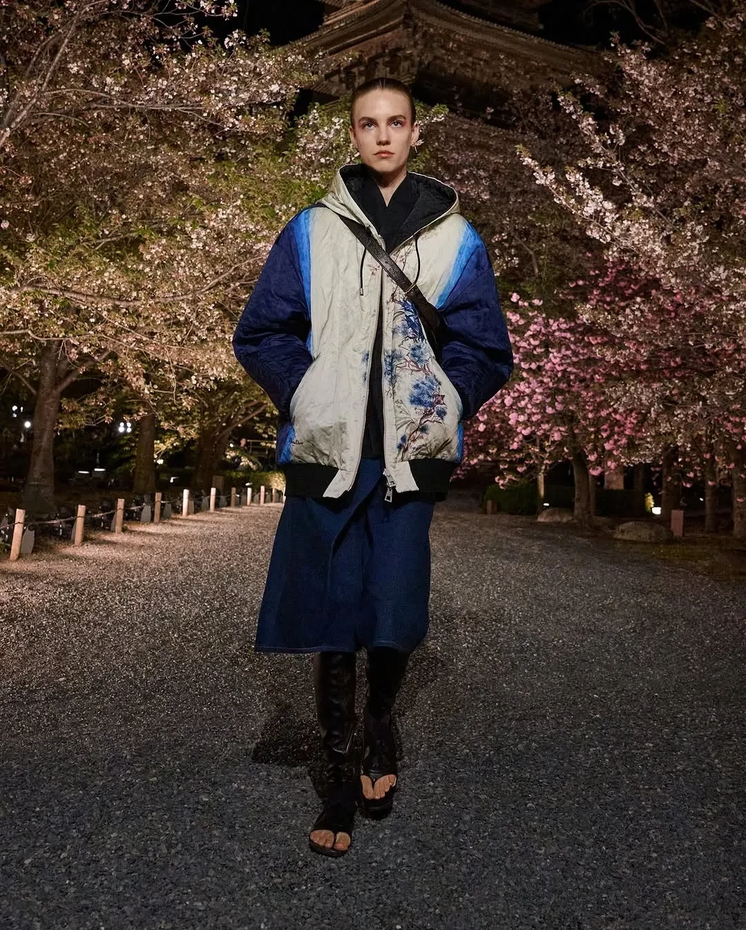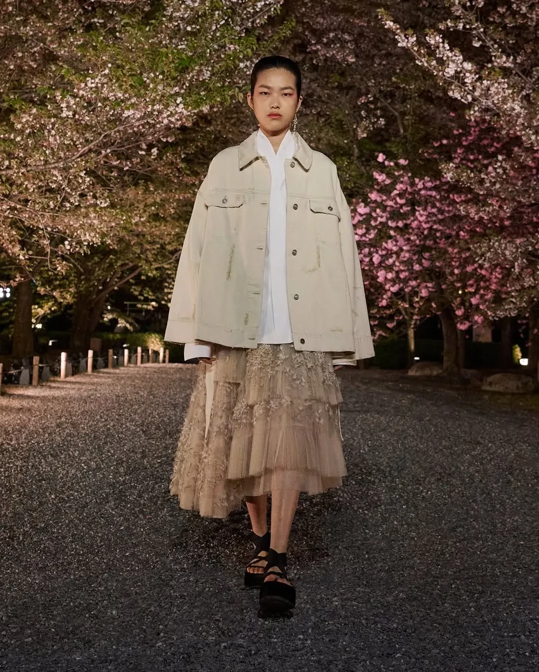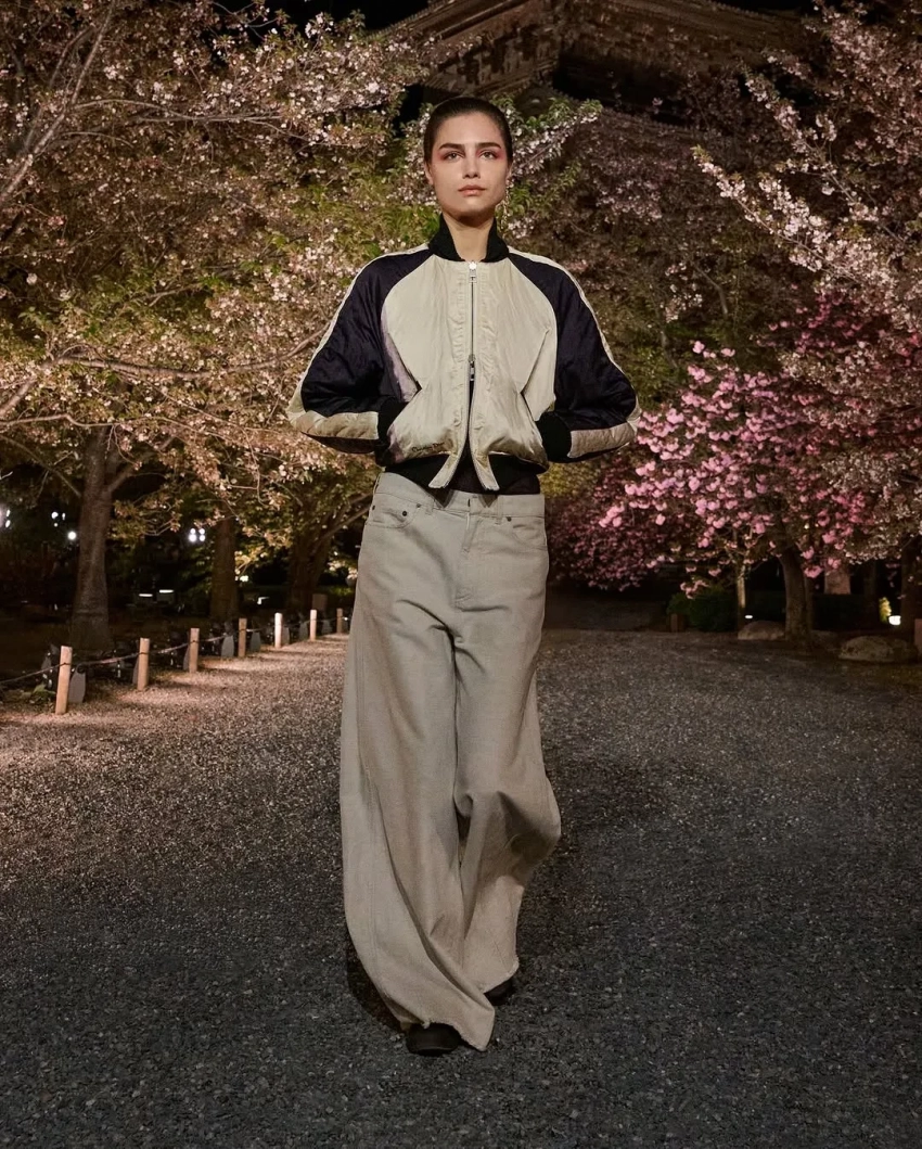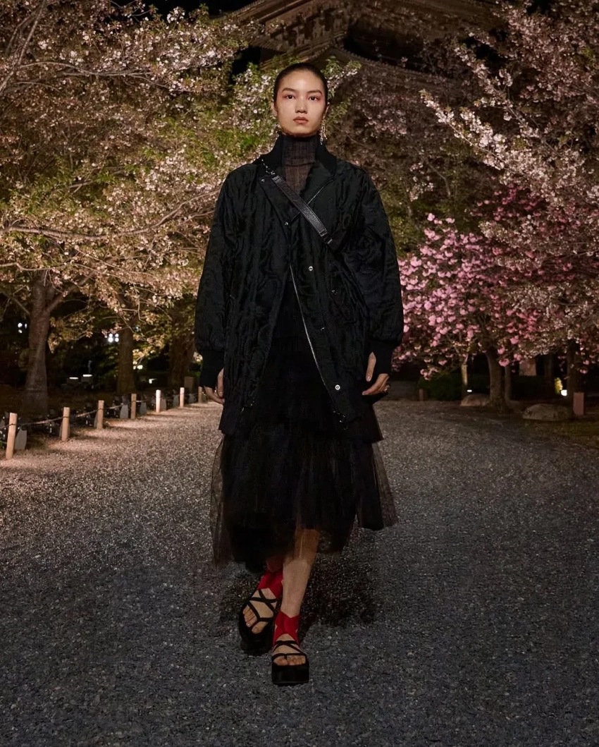 Дева КассельСофи МарсоМоника БарбароАнна СаваиЛили ДжеймсЭль МакферсонОксана БондаренкоФото Оксаны БондаренкоОксана БондаренкоФото Оксаны БондаренкоОксана БондаренкоВ новой коллекции креативный директор модного дома Мария Грация Кьюри показала образы преимущественно в спортивном стиле с мотивами японской эстетики. Модели прогуливались по аллее между деревьями сакуры на фоне пагоды в бомберах с росписью, широких джинсах и многослойных юбках. На ногах они носили обувь на платформе со шнуровкой и в стиле традиционных японских дзори.