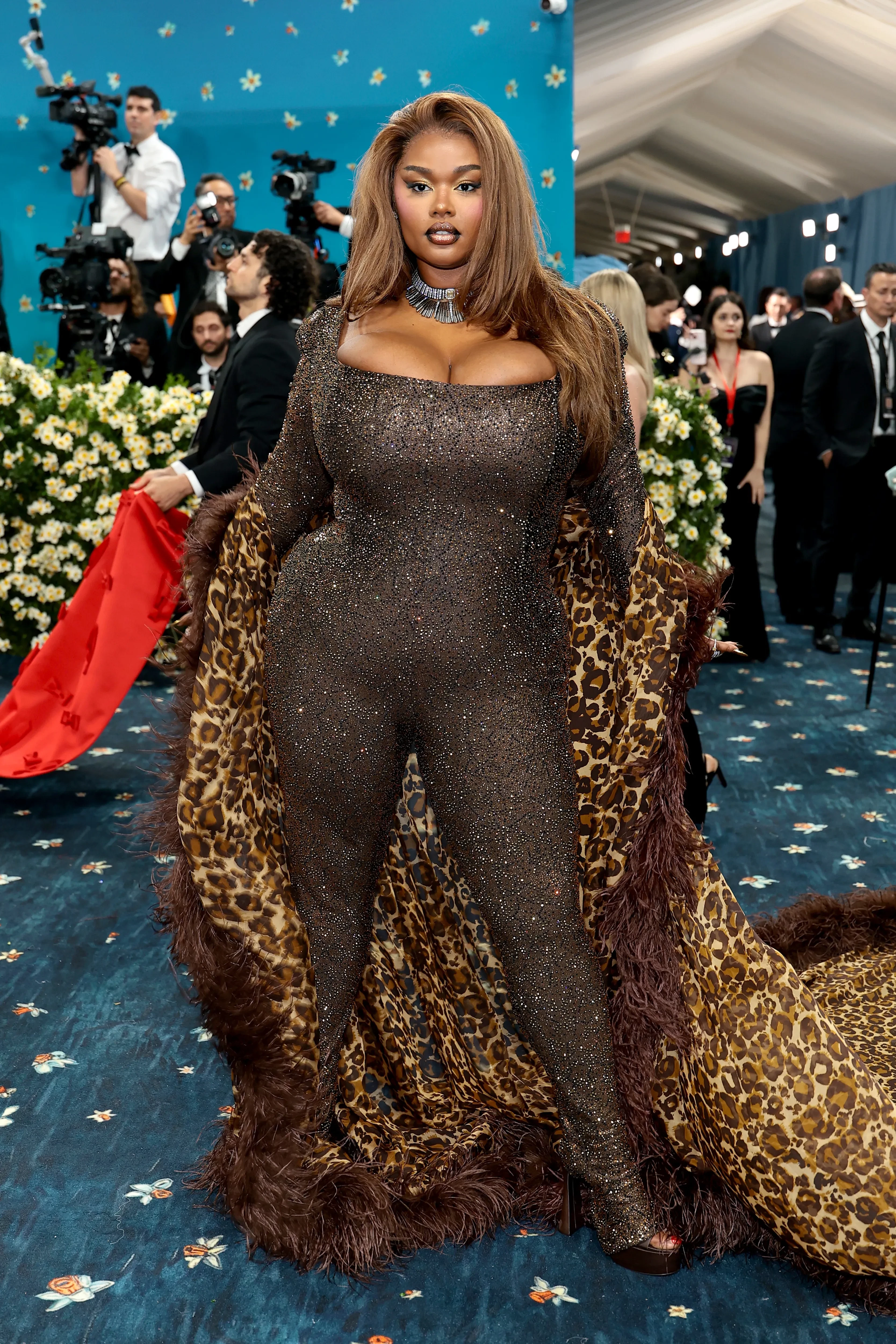 Doja Cat в Marc JacobsШакира и Майя Хоук появились на дорожке в розовых платьях, не имеющих ничего общего с темой мероприятия. Джорджина Родригес тоже решила не вникать в суть Бала и пришла в платье-комбинации Vetements. Образ total black Дуа Липы в этом году, к сожалению, не особо отличается от её прошлогоднего выхода. Модель Прешес Ли тем временем показала самый неудачный образ на дорожке, появившись в блестящем облегающем комбинезоне и леопардовой накидке.