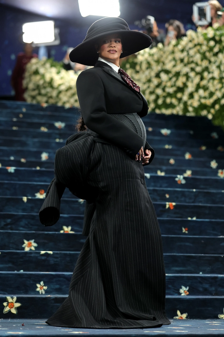 Причиной стал комментарий 37-летней певицы, который она дала репортёру тикток аккаунта "Access Hollywood" на красной дорожке главного модного события года. Журналист спросил у Рианны, взяла ли она с собой зонт, намекая на хит "Umbrella", на что она ответила: "Его принёс Рокки (A$AP Rocky). Я привела с собой ребёнка", указывая на свой округлившийся живот.