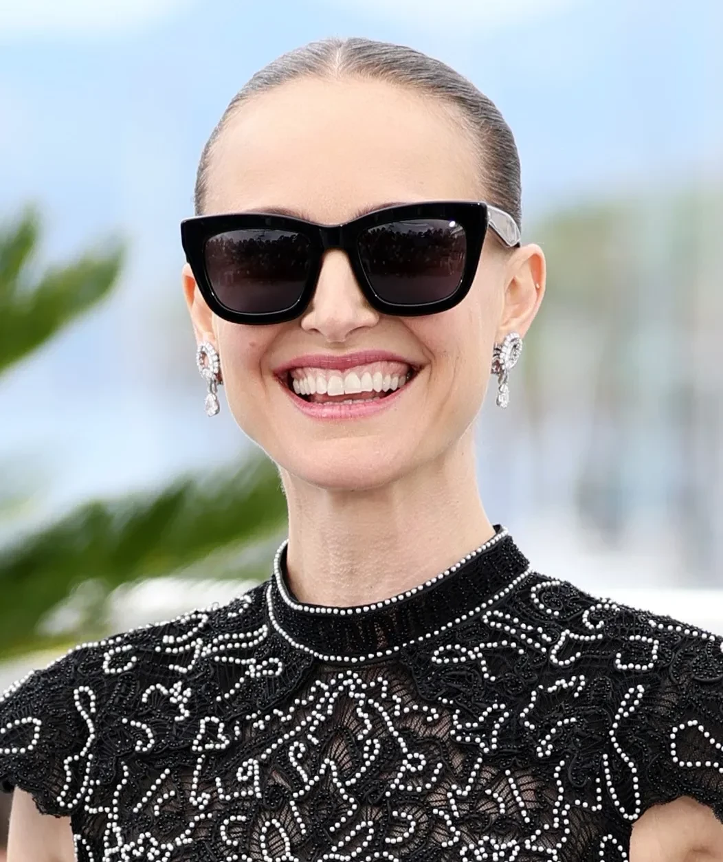 43-летняя Натали, которая в прошлом году со скандалом развелась с Бенжаменом Мильпье, с улыбкой позировала фотографам в коротком чёрном платье Dior, расшитом бисером, и солнцезащитных очках.