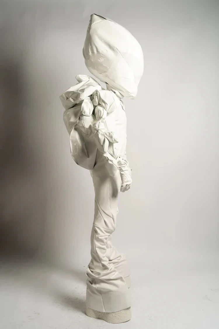 Немецкий дизайнер Леон Эмануэль Бланк выпустил футуристичный мужской комбинезон из лошадиной кожи, в котором невозможно остаться незамеченным. К комбезу прилагаются не менее странные рюкзак и шлем. В таком можно отправиться, например, на тематическую вечеринку или в дурдом. Цена костюма — 1 345 000 рублей.