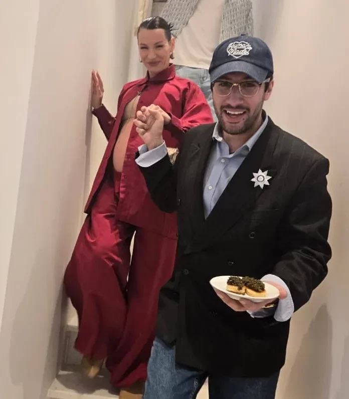 Галич надела на вечеринку бордовый брючный костюм в пижамном стиле с бежевым топом и сумкой Dior. "Асап и Рианна курильщика", — подписала Ида совместное фото с Алеко, главредом журнала "Мнение редакции* может не совпадать".