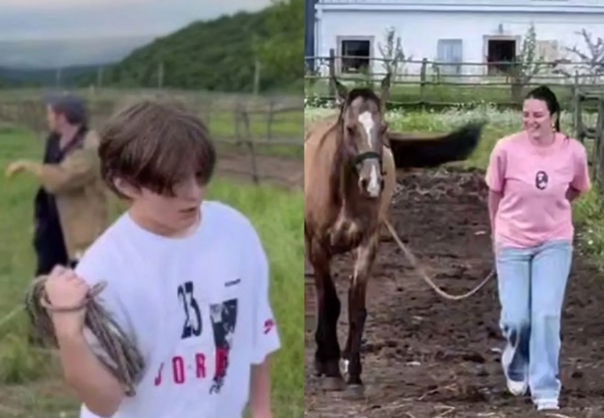 Судя по опубликованным в инстаграме* Гигинеишвили видео, он организовал конную экскурсию по окрестностям для дочери, также посадил на лошадь и сына. В роликах показано, как Нина и Иван ведут животных под уздцы по грунту на фоне аскетичных построек.