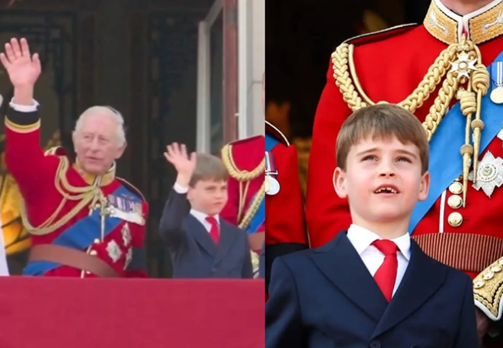 Семилетний Луи корчил рожицы, закрывал лицо руками во время проезда в карете мимо толпы и с эмоциями наблюдал с балкона Букингемского дворца за пролётом самолётов. В сети обратили внимание, что внук Карла внимательно следит за его движениями и повторяет их — например, так же машет рукой. В связи с этим в сети шутят, что Луи уже "готов к своей короне".
