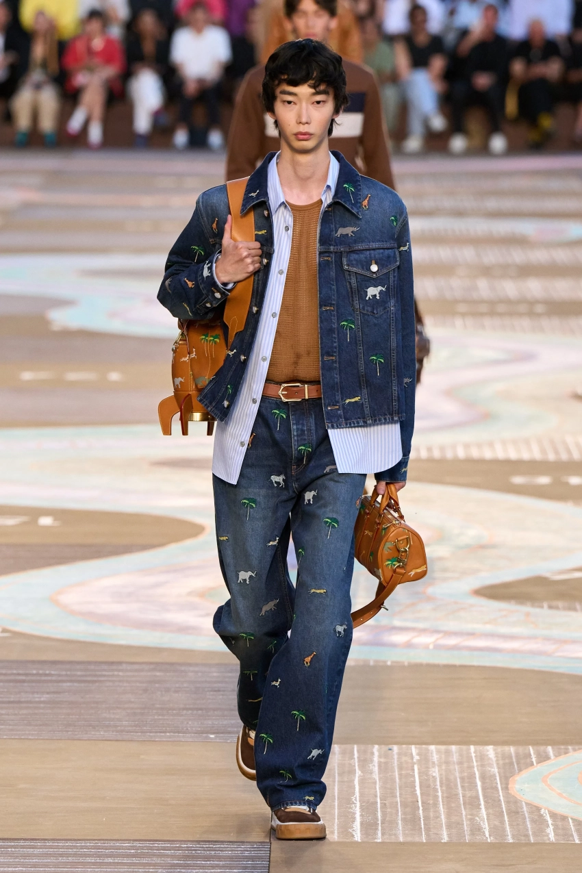 A$AP NastПоказ летней мужской коллекции Louis Vuitton прошёл в парижском центре искусств и культуры Помпиду. На её создание 52-летнего Фаррелла Уильямса вдохновила поездка в Индию. Модели выходили на подиум в образах с принтами пальм, антилоп, зебр и других животных, в пуховиках с вышивкой бисером и драгоценными камнями, а ярким акцентом в коллекции стали сумки в виде лягушек и с анималистичными принтами.