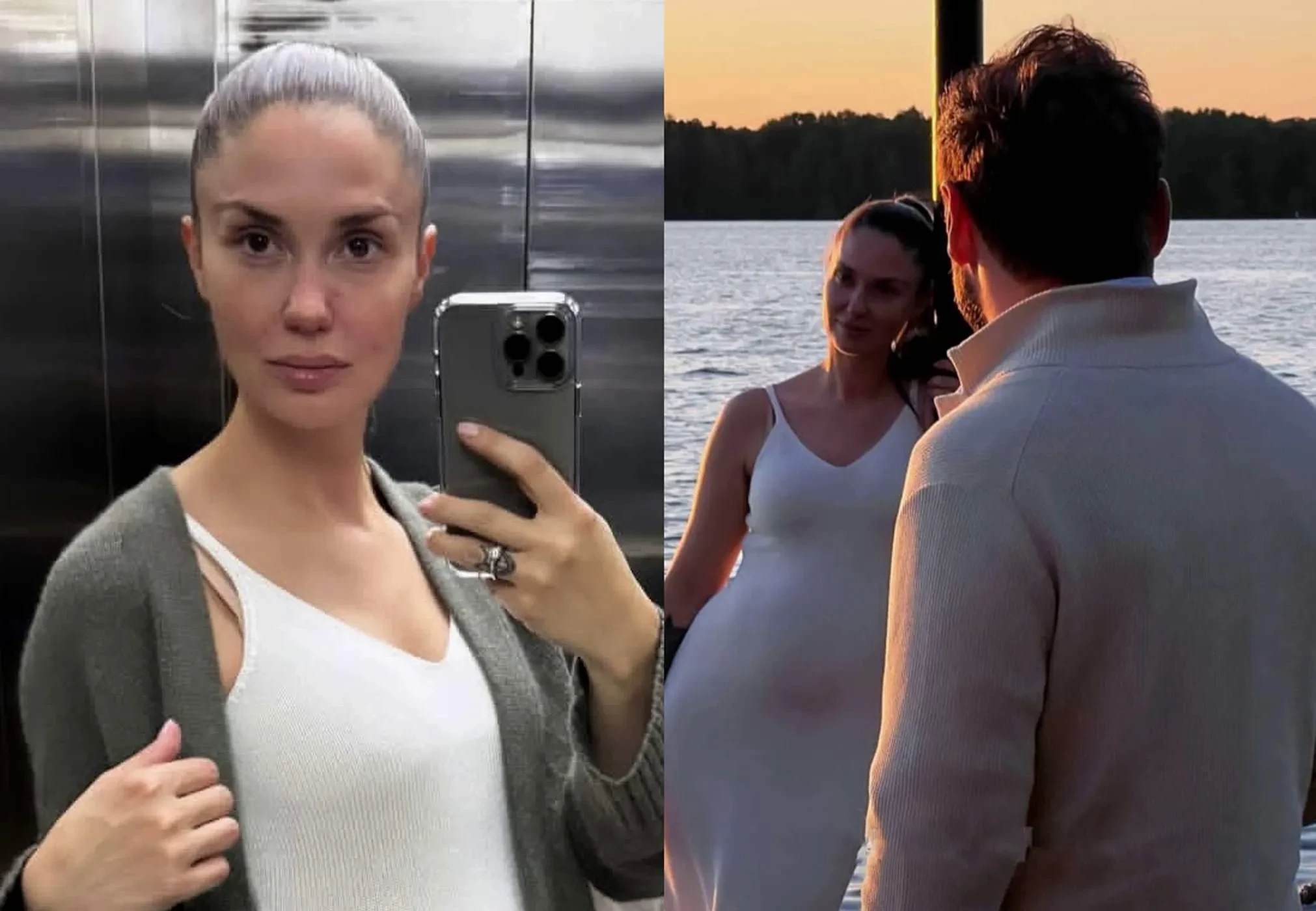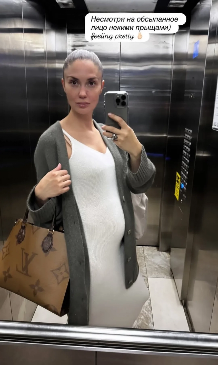 Также она запостила фото, на которых её можно увидеть в облегающем платье, подчёркивающем её округлившийся живот.