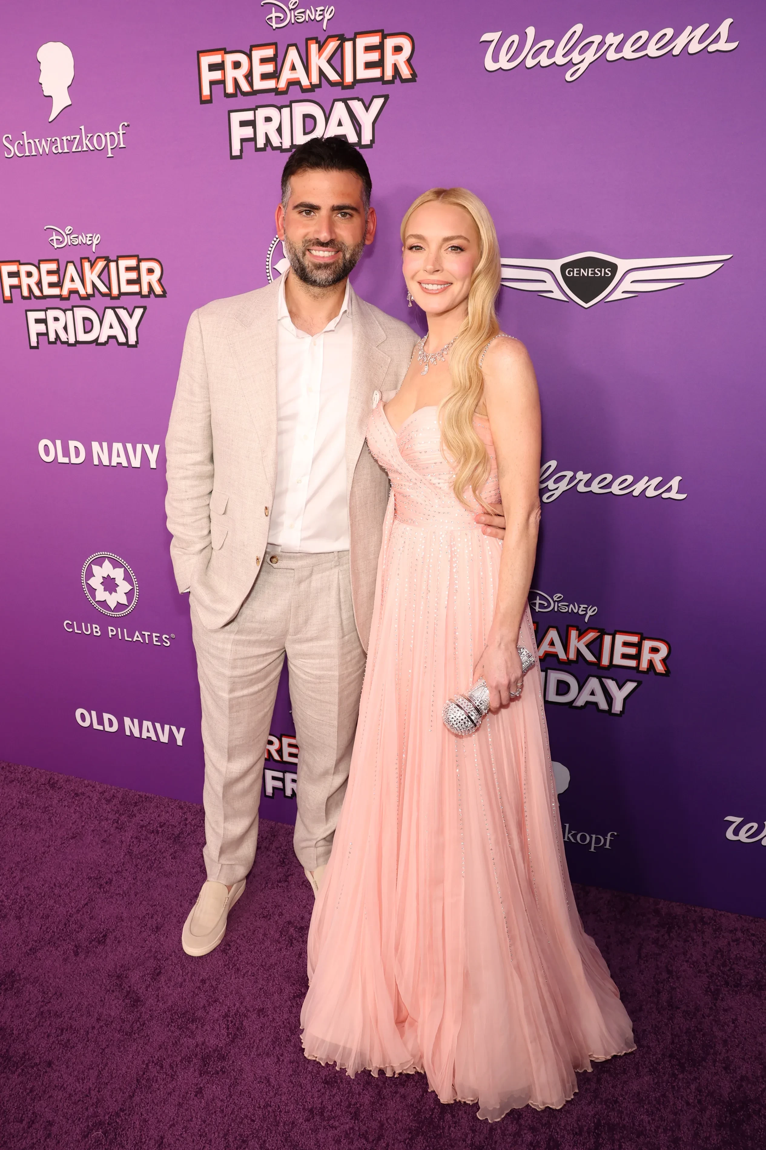 39-летняя Лохан, "камбэк" которой в шоу-бизнес сейчас обсуждают в СМИ, появилась перед камерами с мужем, финансистом арабского происхождения Бадером Шаммасом (напомним, на днях пара отметила двухлетие своего сына). Премьеру также посетила 53-летняя Кармен Электра.