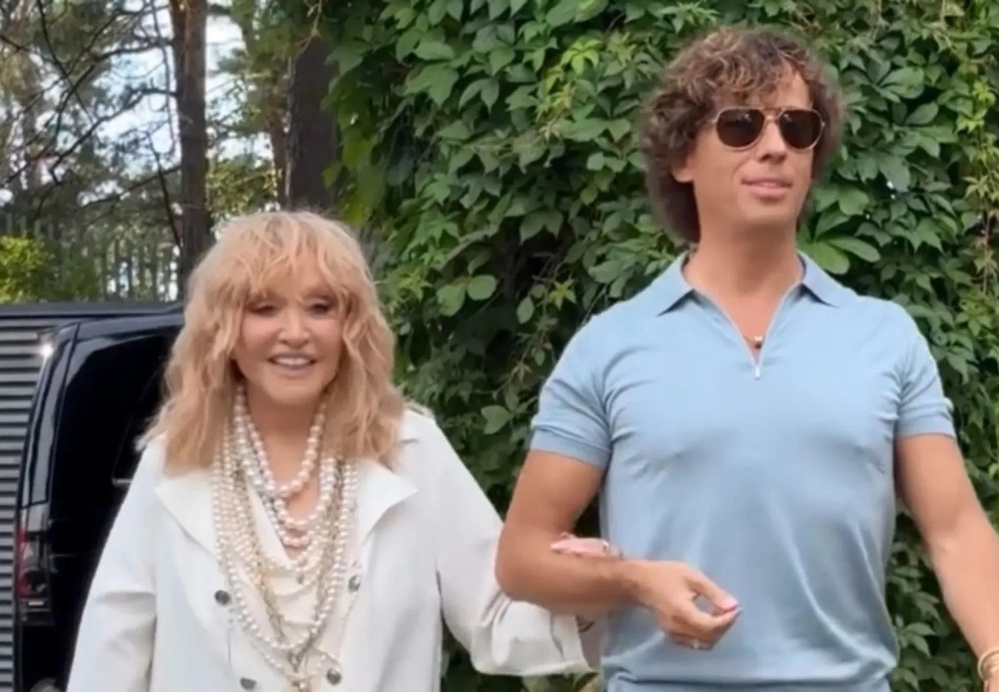 На мероприятии, которое проходит в концертном зале "Дзинтари", 76-летняя артистка появилась в белом плаще, обыграв его украшением из множества нитей жемчуга и цепей, а также серебряной сумкой. Шоумен выглядел более сдержанно: он надел голубое поло, коричневые брюки, золотые браслеты и солнцезащитные очки.