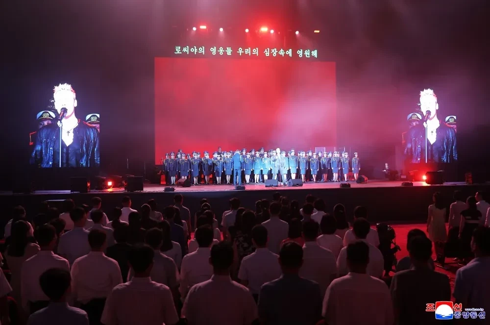 33-летний Шаман (Ярослав Дронов) выступил в Пхеньяне на концерте по случаю 80-летия освобождения Корейского полуострова от японского господства. Фотографии с мероприятия опубликовало Центральное телеграфное агентство Кореи.