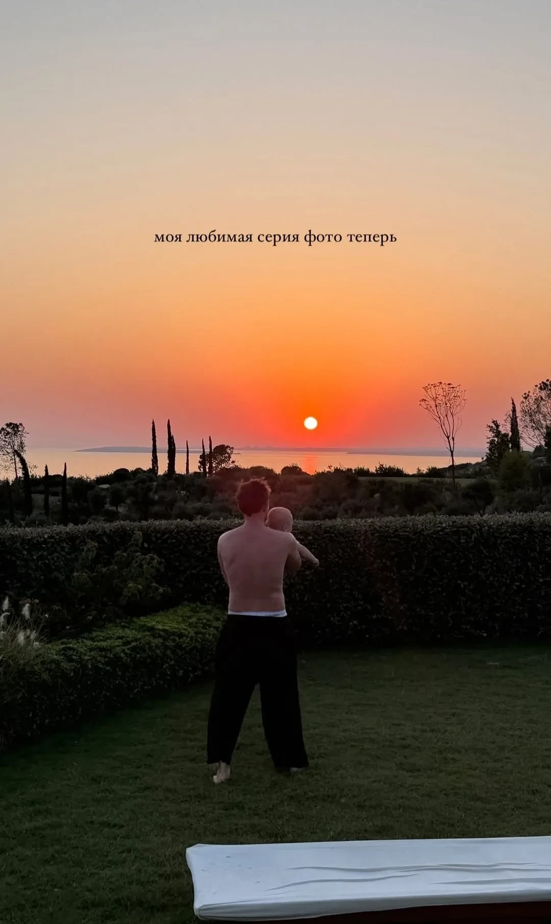 В подборку вошли кадры, на которых Александр играет с сыном Фёдором на фоне заката. "Моя любимая серия фото теперь", — написала Виктория.