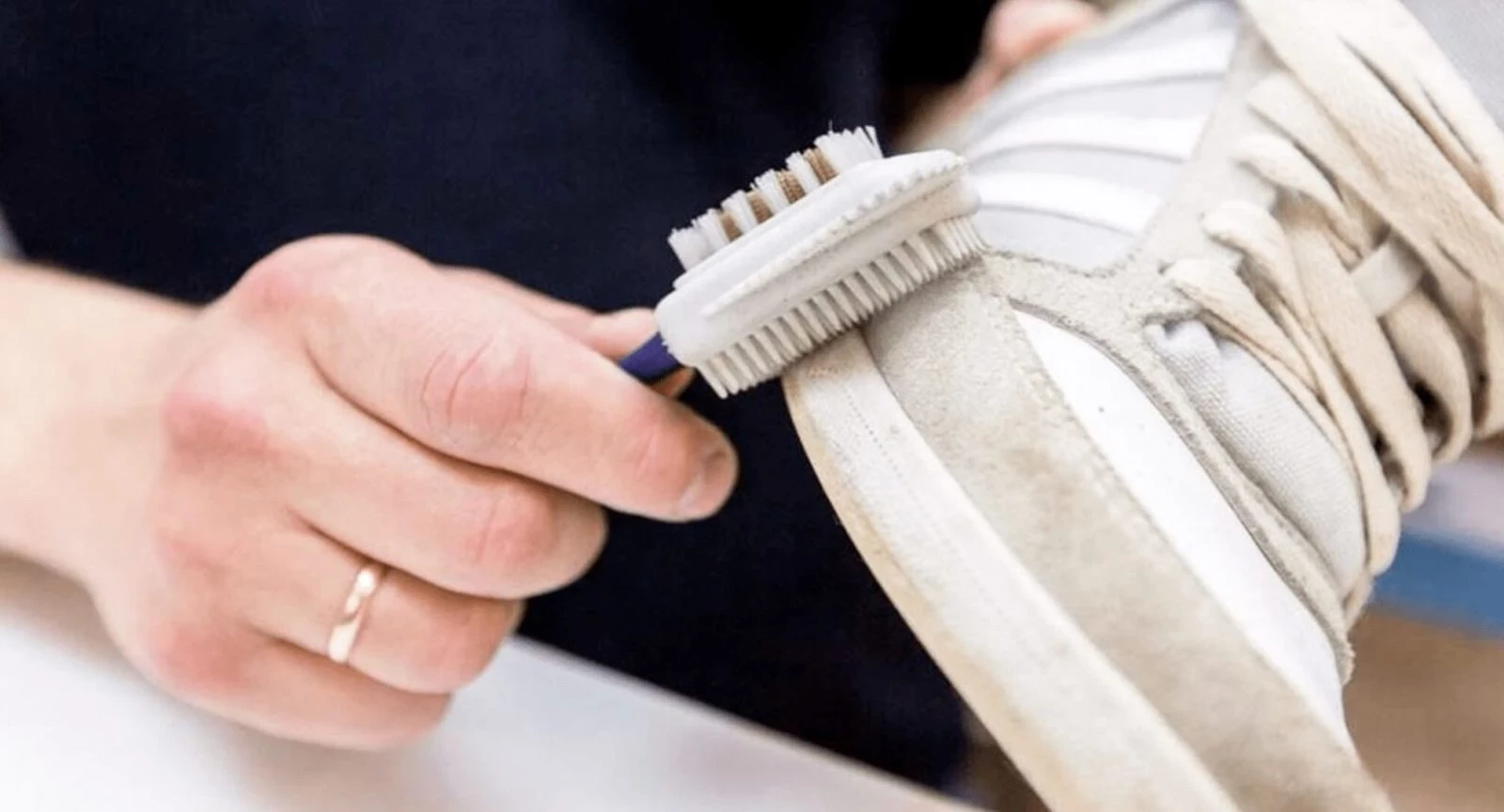 • сначала удалите грязь сухой щеткой с мягкой щетиной;
