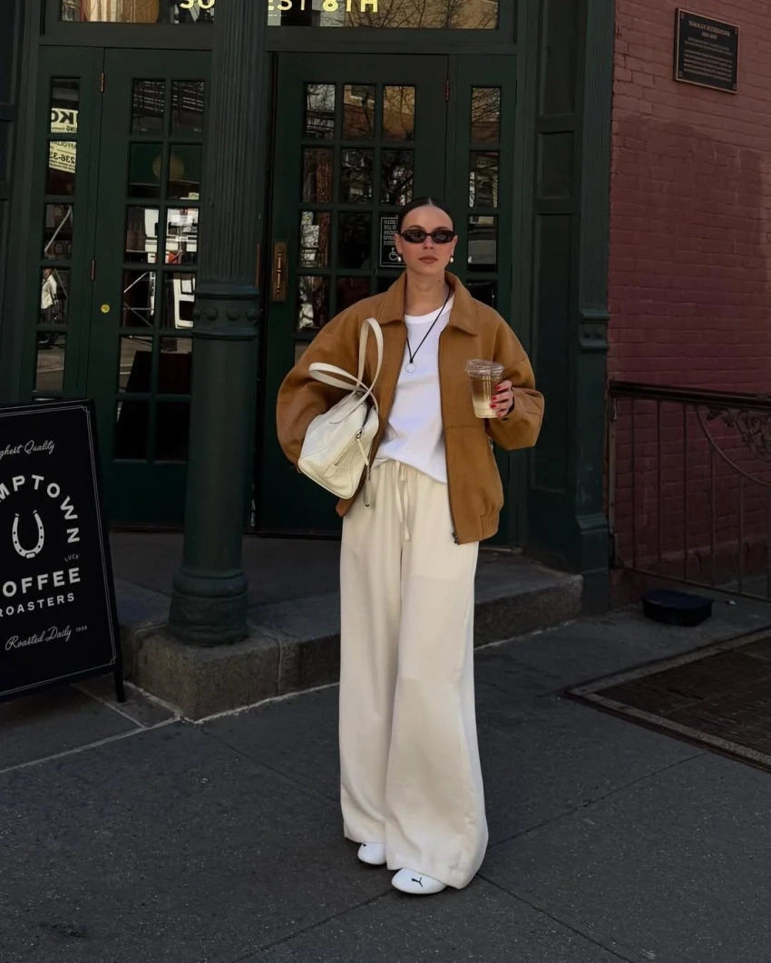 Секрет комплекта — в мягкой фактуре и собранности силуэта. Достаточно накинуть сверху объемное пальто, дубленку или укороченный пуховик — и образ будет выглядеть дорого и современно.