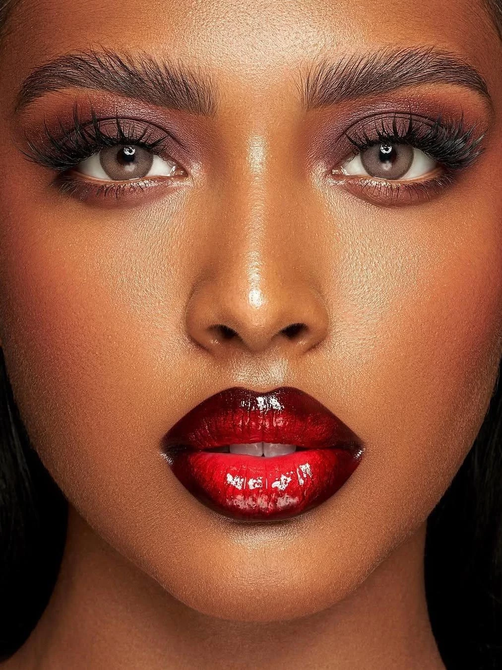 Темно-вишневый карандаш в сочетании с матовой помадой и прозрачным блеском создадут насыщенный эффект.