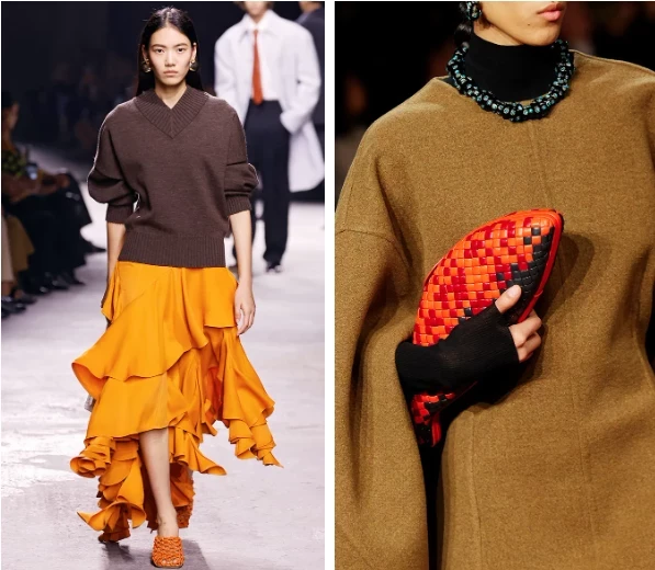 Если простые комбинации уже не вдохновляют, переходи на следующий уровень. Вдохновляйся коллекцией Bottega Veneta и попробуй неожиданные дуэты, например: