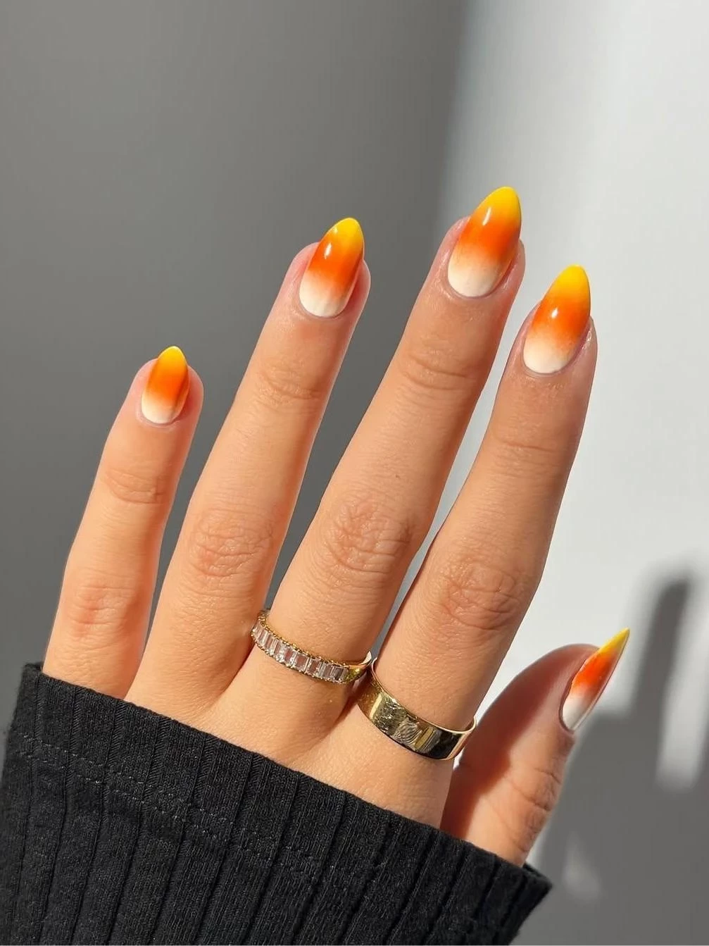 Переход от ярко-жёлтого к апельсиновому на ногтях — будто солнечный градиент на закате. Омбре всегда ассоциируется с движением и переменами, а значит, с новыми источниками дохода.
