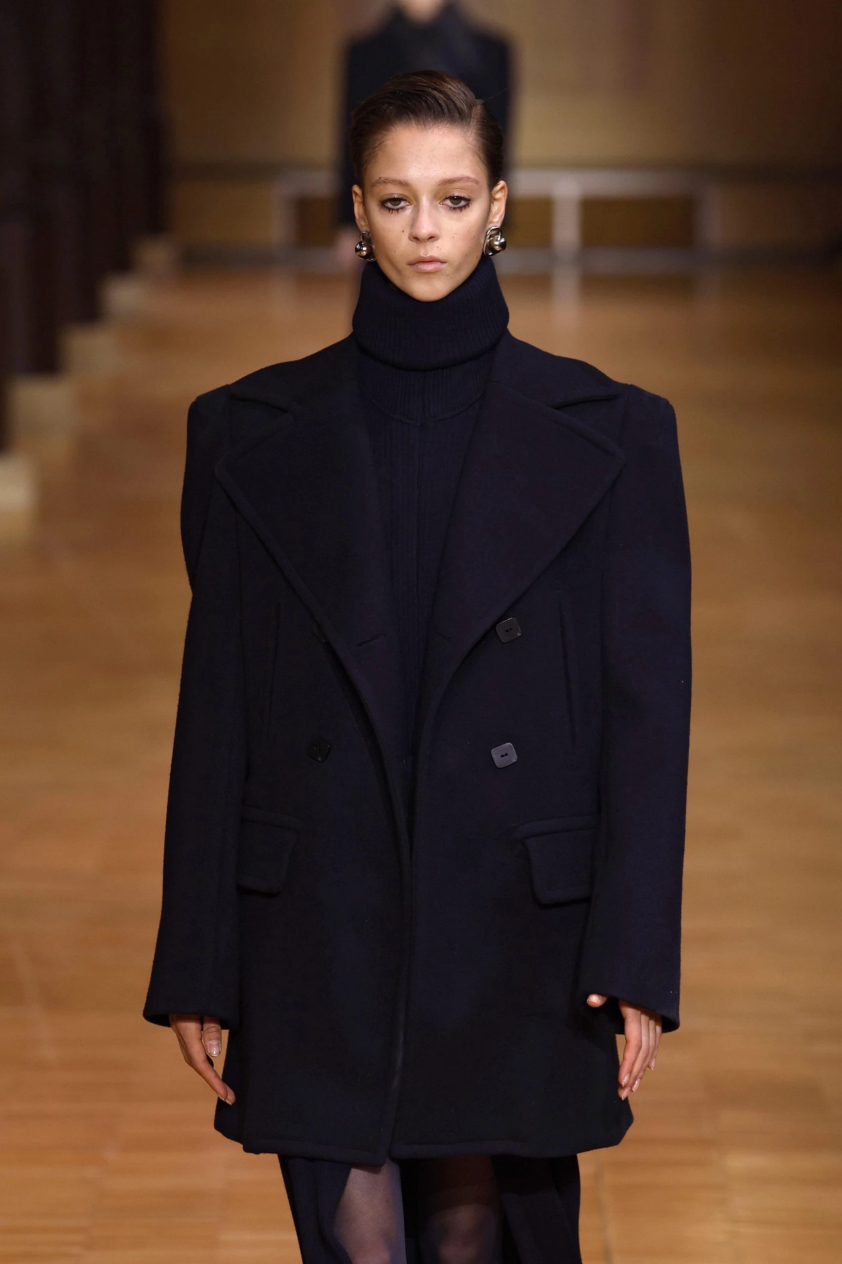 Оверсайз по-прежнему актуален, но приталенные силуэты возвращаются в моду в новой форме. Дизайнеры предлагают подчёркивать талию при помощи тонких ремней, надетых поверх объёмных пальто. Это позволяет менять образ за счёт одного аксессуара — достаточно снять пояс, чтобы получить новый силуэт.