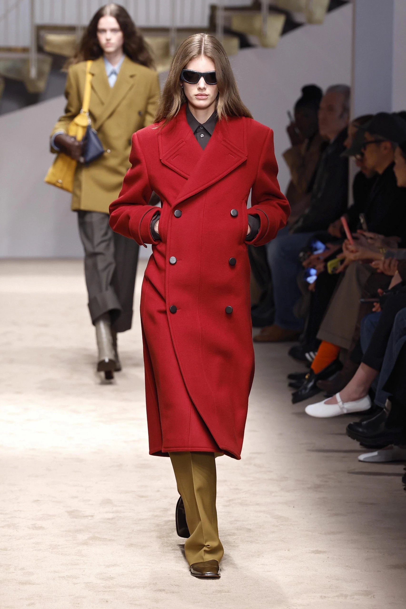 Классика снова на коне. Пальто-пиджак с прямым кроем, подчёркнутыми плечами и длиной до середины бедра возвращается в гардероб. Такой вариант отлично подходит для офисных образов, но при этом прекрасно сочетается с романтичными платьями. Если хочется расслабленного настроения — обратите внимание на более мягкие версии, как в коллекции Prada.
