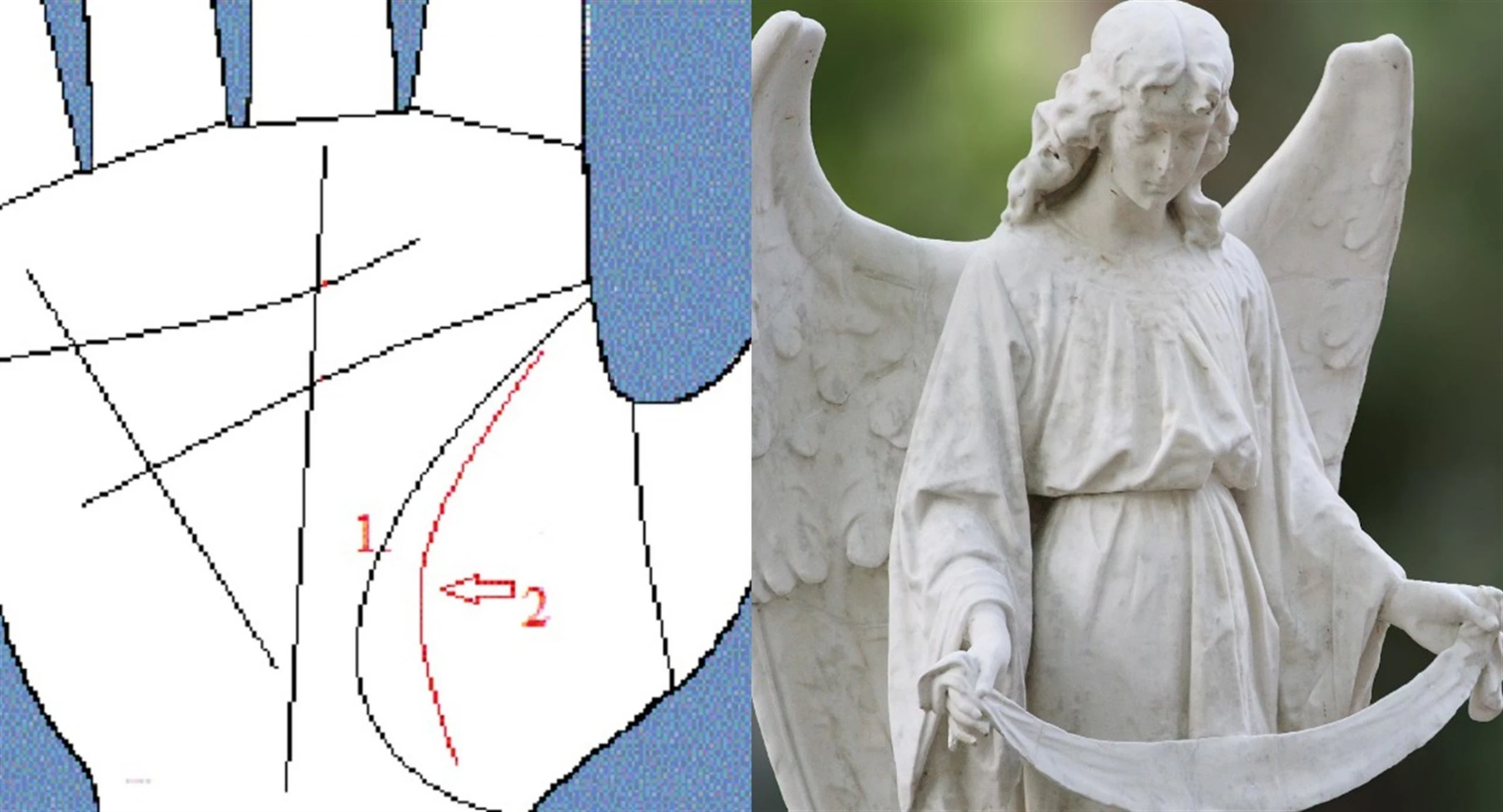 Линии ангелов-хранителей расположены рядом: они идут параллельно линии жизни со стороны большого пальца. В отличие от линии жизни, которая всегда одна, ангелов-хранителей может быть несколько. Эти линии свидетельствуют о наличии в судьбе человека невидимых помощников и защитников.