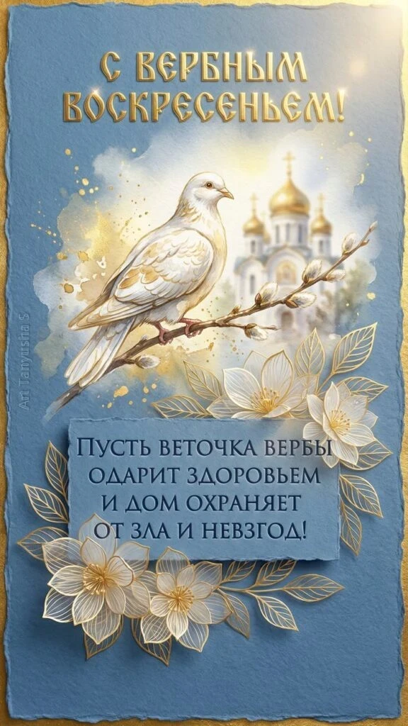 1. С Вербным воскресеньем! Пусть в доме всегда будет мир, в сердце — спокойствие, а в жизни — как можно больше добрых и светлых дней. Желаю здоровья, душевного тепла и тихой радости рядом с близкими людьми.